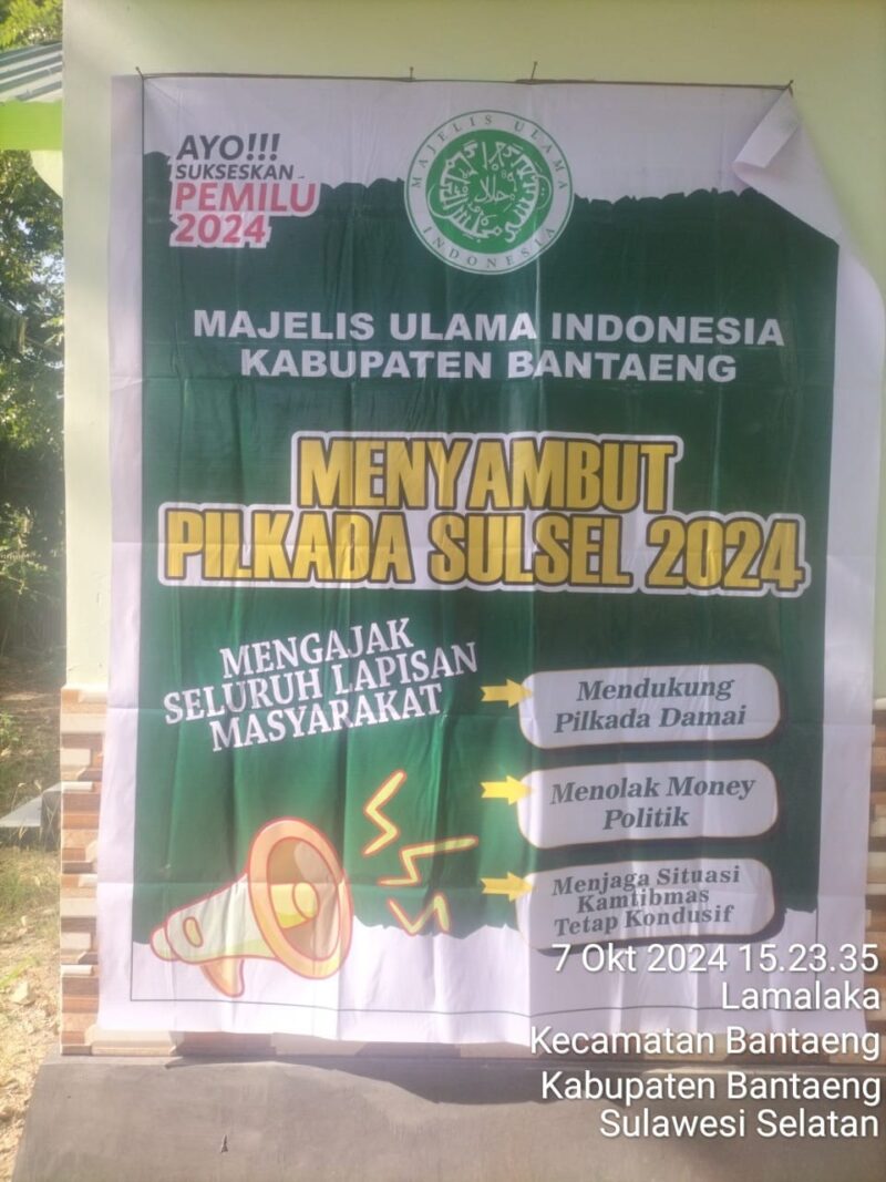 Imbauan tersebut terpampang di depan kantor MUI kabupaten Bantaeng di jalan Andi Mannapiang, Kelurahan Lamalaka, Kecamatan Bantaeng. Senin (7/10).