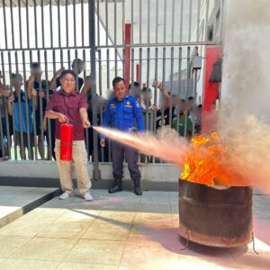 Sosialisasi tersebut juga meliputi praktek langsung oleh Tenaga Damkar yang melibatkan perwakilan pegawai, dharmawanita dan tenaga dapur terkait pemadaman api menggunakan alat – alat modern dan tradisional.