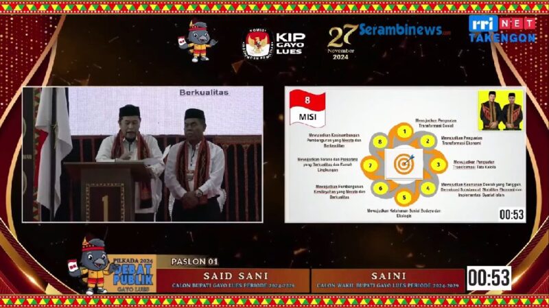 GAYO LUES | Pasangan calon (Paslon) Bupati Gayo Lues yang berkontestasi pada Pemilihan Kepala Daerah (Pilkada) Kabupaten Gayo Lues Tahun 2024 memaparkan visi-misi yang sejalan dengan Rencana Pembangunan Jangka Panjang Daerah (RPJPD) 2025-2045.