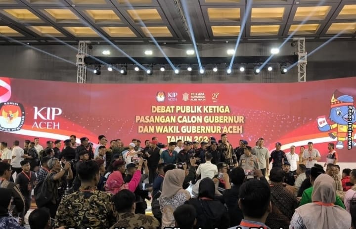 Banda Aceh – Debat putaran ke ketiga calon Gubernur dan Wakil Gubernur Aceh di Hotel The Pade Aceh, Selasa (19/11/24) nyaris ricuh.