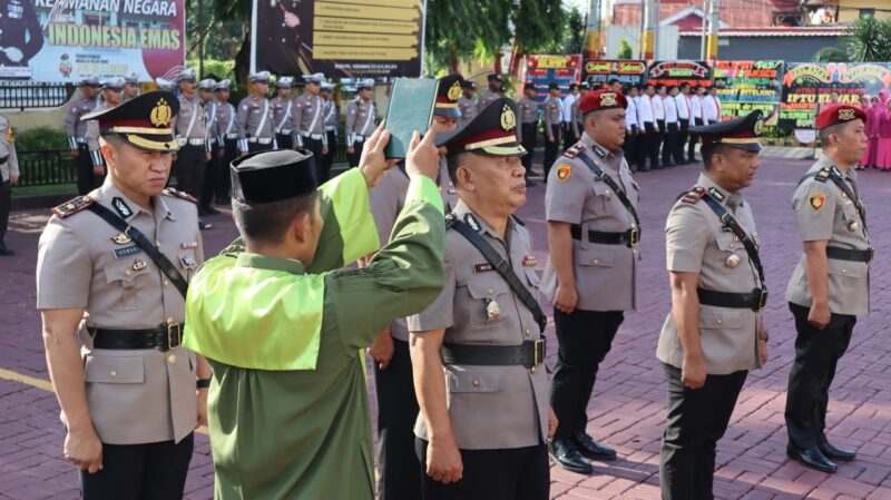 BANTAENG Teropong Barat com, – Kapolres Bantaeng AKBP Nur Prasetyantoro Wira Utomo, S.I.K.,M.H., pimpin langsung acara serah terima jabatan Waka Polres,Kasat Intelkam, Kasat Resnarkoba,Kasi Hukum,Kanit Regident di Lapangan Mapolres Bantaeng.Senin (6/1/2025)