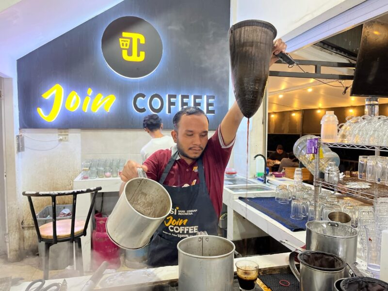 Kopi khas Aceh menjadi favorit para pengunjung yang singgah di Join Coffee karena bahan kopi produksi asli ule Kareng serta banyak sajian kopi yang variatif seperti Robusta, Arabica dan banyak varian kopi sachet lainnya.