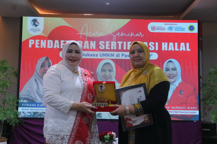 BANDA ACEH – Organisasi Perempuan Indonesia Maju (PIM) Aceh menggelar seminar bertema “Pendaftaran Sertifikasi Halal: Kunci Sukses UMKM di Pasar Global”. Acara ini diadakan di Plenary Hall UUI pada Senin (10/2/2025) dan dihadiri oleh para pelaku Usaha Mikro, Kecil, dan Menengah (UMKM) dari berbagai daerah di Aceh.