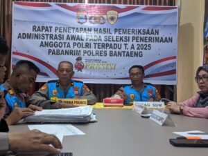 BANTAENG, Teropong Barat.com, – Panitia Pembantu Penerimaan (Panbanrim) Polres Bantaeng menggelar Rapat penetapan hasil pemeriksaan administrasi awal pada seleksi penerimaan anggota Polri terpadu tahun anggaran 2025.