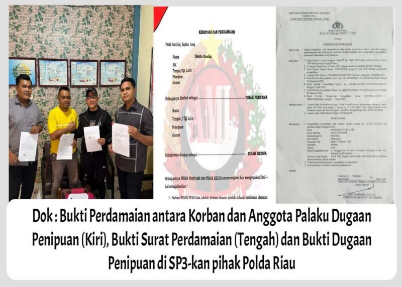 PRKANBARU — Dugaan Penipuan yang diduga dilakukan Mirwansyah, dan dilaporkan oleh Jetro Sitorus sebagai Pelapor berdasarkan laporan bernomor :LP/B/483/XII/2023/SPKT/Polda Riau, tertanggal 19 Desember 2023 lalu.Dihentikan pihak Penyidik Dirreskrimum Polda Riau,berdasarkan Surat Ketetapan dengan nomor : SK Lidik/09/III/Res.1.11/2025 tertanggal 20 Maret 2025.