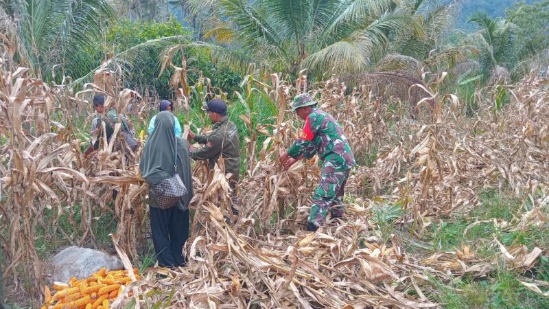Serka Juanda keruas, Babinsa Koramil 09/Putri betung Kodim 0113/Gayo lues melaksanakan pendampingan ketahanan pangan dalam hal panen Jagung milik bapak Budiman warga Desa Putri betung kecamatan Putri betung Kabupaten Gayo lues , Rabu [21/05/2025]