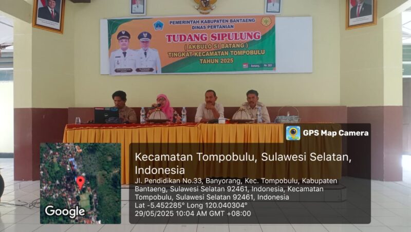 BANTAENG Teropong Barat.com, – Babinsa Kelurahan Campaga, Serka Saharuddin dari Koramil 1410-03/Tompobulu Kodim 1410/Bantaeng, menghadiri kegiatan Tudang Sipulung (Akbulo Sibatang) Tingkat Kecamatan Tompobulu Tahun Anggaran 2025 yang diselenggarakan oleh Dinas Pertanian bersama penyuluh pertanian di Aula Kantor Camat Tompobulu, Kelurahan Banyorang, Kecamatan Tompobulu, Kabupaten Bantaeng. Kamis 29 Mei 2025