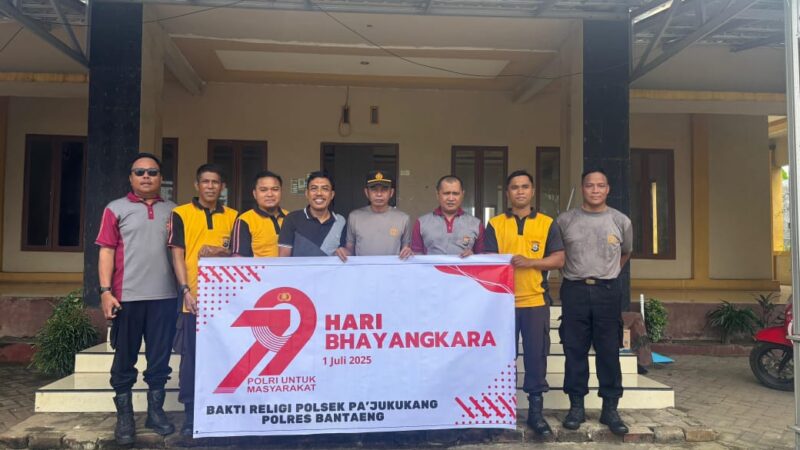 BANTAENG, Teropong Barat.com, Kapolsek Pajukukang Polres Bantaeng IPTU Paulus, S.E., bersama Personel Polsek Pajukukang melaksanakan kegiatan Bakti Religi dalam rangka Hari Bhayangkara Ke 79. Kegiatan tersebut dilaksanakan di tempat ibadah wilayah Kecamatan Pajukukang yakni Masjid Baitul Rahim di terletak Biangkappo Dusun Papanloe Desa Papaloe Kecamatan Pajukukang Kabupaten Bantaeng. Rabu (18/6/2025)