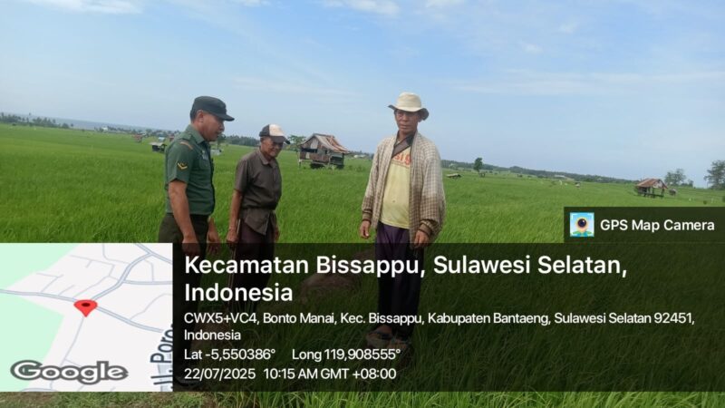 BANTAENG Teropong Barat.com, – Serda Arifin Muda, Babinsa Kelurahan Bonto Manai, Koramil 1410-01/Bissappu Kodim 1410/Bantaeng, melaksanakan kegiatan pendampingan Luas Tambah Tanam (LTT) bersama para petani di wilayah binaannya. Selasa 22 Juli 2025.