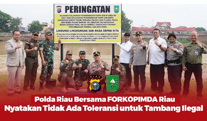 Pekanbaru, 31 Juli 2025 — Kepolisian Daerah (Polda) Riau bersama Forum Koordinasi Pimpinan Daerah (Forkopimda) Provinsi Riau menyatakan komitmen bersama untuk memberantas praktik tambang ilegal di wilayah Riau. Dalam pernyataan sikap yang diumumkan secara terbuka, seluruh unsur Forkopimda menegaskan bahwa tidak akan ada toleransi terhadap kegiatan pertambangan tanpa izin yang merusak lingkungan dan melanggar hukum.