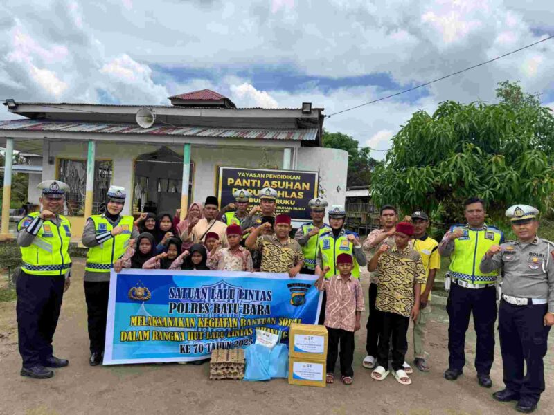BATU BARA – Semangat berbagi dan kepedulian mewarnai peringatan Hari Bhayangkara Lalu Lintas ke-70 di Polres Batu Bara. Satuan Lalu Lintas (Satlantas) Polres Batu Bara memilih untuk merayakannya dengan menyambangi dan memberikan bantuan sosial kepada Yayasan Pendidikan Panti Asuhan Darul Ikhlas Labuhan Ruku, pada Jumat, 5 September 2025, pukul 11.00 WIB.