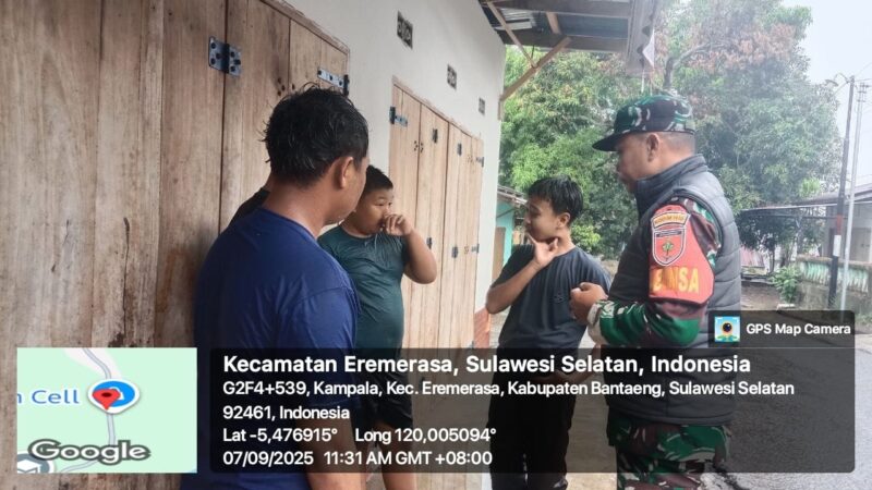 BANTAENG Teropong Barat.com, – Babinsa Desa Kampala, Koramil 1410-02/Eremerasa, Serda Ahmad R, melaksanakan kegiatan komunikasi sosial (Komsos) bersama para remaja di Desa Kampala, Kecamatan Eremerasa, Kabupaten Bantaeng, Minggu (7/9/2025).