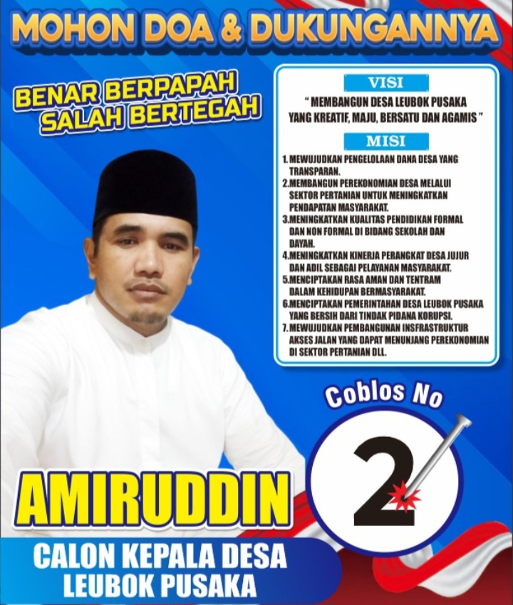 Tgk Amir siap dipanggil masyarakat 1×24 jam jika nantinya terpilih sebagi geucik Desa Lubuk Pusaka terkait kepentingan masyarakat,Karena sipatnya harus mendahulukan kepentingan umum,Oleh sebab itu dahulukan kepentingan umum dari pada pribadi “!