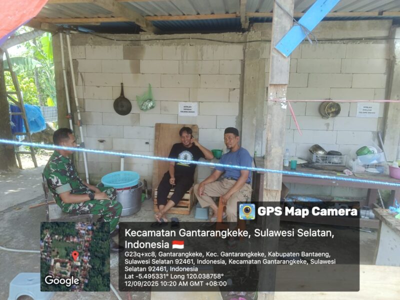 BANTAENG, Teropong Barat.com, – Babinsa Kelurahan Gantarangkeke, Koramil 1410-03/Tompobulu, Serda Arifuddin melaksanakan kegiatan Komunikasi Sosial (Komsos) bersama tokoh masyarakat, tokoh agama, tokoh adat, dan tokoh pemuda Kegiatan ini berlangsung di Kelurahan Gantarangkeke, Kecamatan Gantarangkeke, Kabupaten Bantaeng. Jumat (12/9/2025).