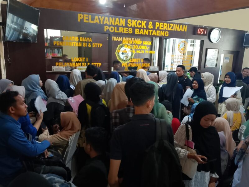 BANTAENG Teropong Barat.com, – Polres Bantaeng disibukkan dengan lonjakan besar pemohon Surat Keterangan Catatan Kepolisian (SKCK). Dokumen ini menjadi salah satu syarat utama dalam seleksi PPPK, sehingga antrean pemohon meningkat tajam. Jum’at (12/09/2025)