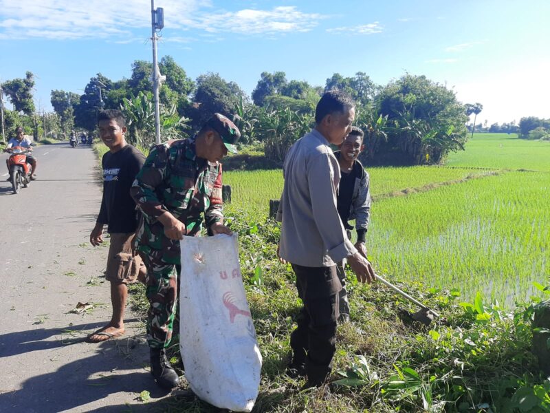 TAKALAR – teropongbarat.com|Terus bergerak untuk ciptakan lingkungan yang bersih, Personel Koramil 1426-06/Mapsu Kodim 1426/Takalar, mengajak instansi terkait dan masyarakat melaksanakan kegiatan kerja bakti bersihkan bahu jalan yang ditumbuhi rumput liar di pinggir kiri kanan jalan di Desa Tonasa Kecamatan Sanrobone Kabupaten Takalar. Senin, (06/10/2025).