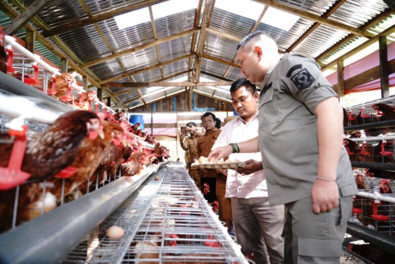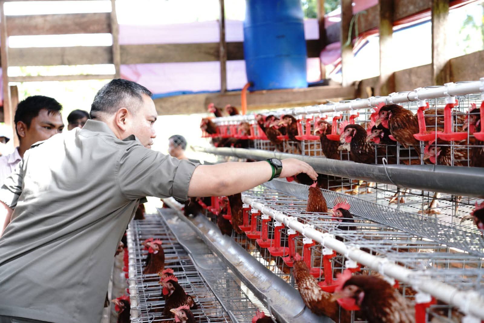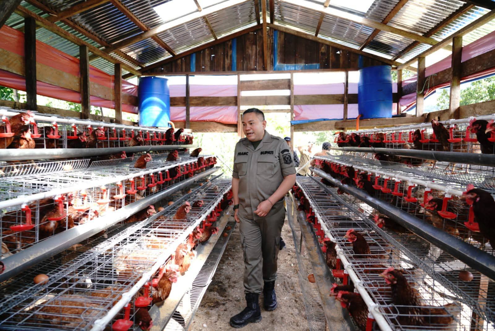 Teropong Barat.com/Bupati Pakpak Bharat, Franc Bernhard Tumanggor mengunjungi peternakan ayam petelur milik Badan Usaha Milik Desa Arih Mersada di Desa Penanggalan Binanga Boang. Ayam-ayam petelur ini tumbuh sehat dan kini mulai menghasilkan telur-telur berkwalitas baik.