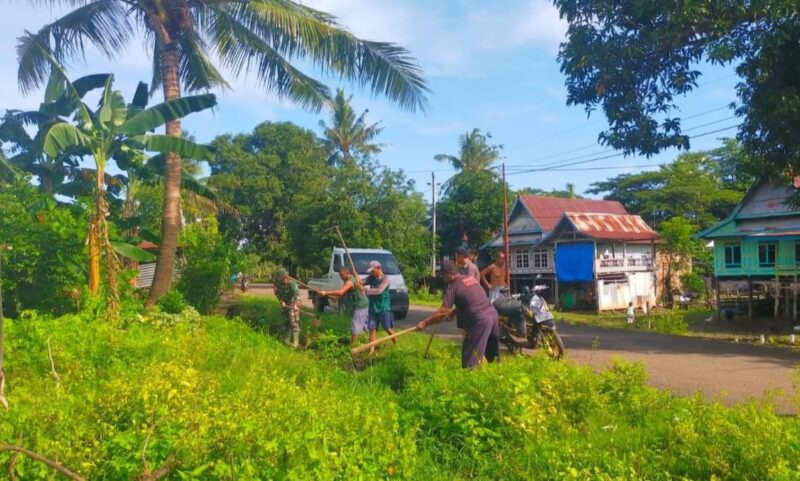 TAKALAR – teropongbarat com|Semangat gotong royong wujudkan lingkungan yang bersih, Personel Koramil 1426-02/Polsel, Kodim 1426/Takalar mengajak pemerintah setempat dan warga melaksanakan kegiatan kerja bakti pembersihan saluran air dan bahu jalan di Kelurahan Rajaya Kecamatan Polongbangkeng Selatan Kabupaten Takalar. Minggu, 26/10/2025.