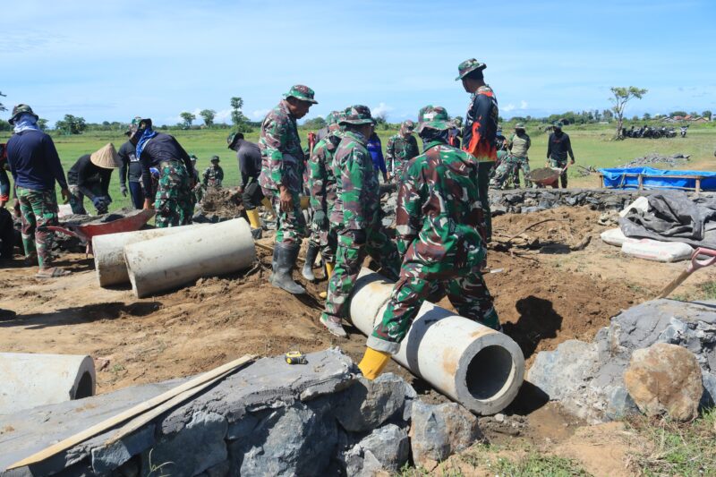 “Pengerjaan terus dilakukan secara bergotong royong bersama warga dan Satgas TMMD demi mendapatkan hasil yang maksimal dan selesai tepat waktu.
