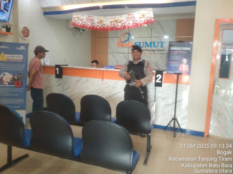 Batu Bara – Sat Samapta Polres Batu Bara meningkatkan pengamanan obyek vital perbankan di seluruh wilayah Kabupaten Batu Bara pada Jumat (31/10/2025), mulai pukul 09.00 WIB. Hal ini dilakukan untuk memberikan rasa aman dan nyaman kepada masyarakat yang melakukan aktivitas perbankan, serta mencegah terjadinya potensi tindak kriminalitas.