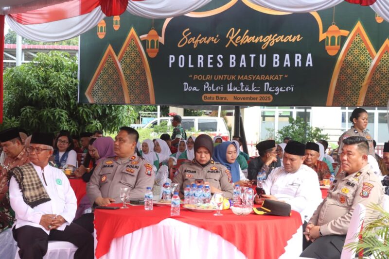 BATU BARA – Polres Batu Bara menggelar acara Safari Kebangsaan Tahun 2025 dengan tema “Doa Polri Untuk Negeri” di Lapangan Apel Polres Batu Bara, Kamis (6/11). Acara ini bertujuan untuk mempererat silaturahmi, memperkuat komunikasi antara aparat dan masyarakat, serta menanamkan nilai-nilai nasionalisme.