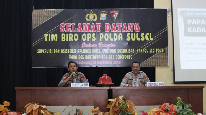 BANTAENG, Teropong Barat.com, – Jajaran Kepolisian Resor Bantaeng menerima Tim Biro Operasi Polda Sulsel dalam rangka melaksanakan supervisi dan asistensi aplikasi ews, doors dan yanpol 110. pada Sabtu 15 November 2025.