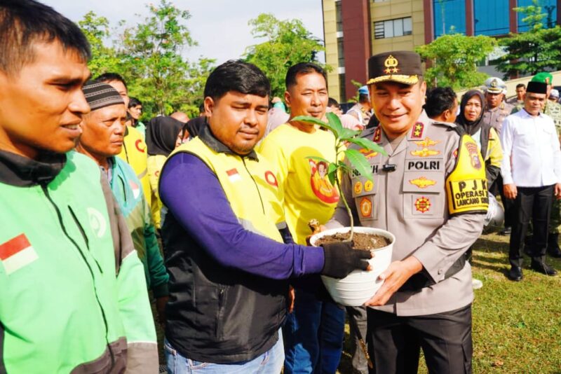 Di akhir apel, Kapolda Irjen Herry Heryawan memberikan bibit pohon kepada siswa apel, serta helm SNI untuk ojek online.