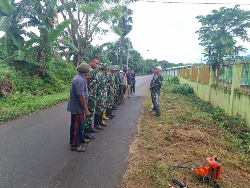 TAKALAR – teropongbarat.com|Sebagai motivator tumbuhkan semangat gotong royong, Personel Koramil 1426-04/Galesong, Kodim 1426/Takalar mengajak warga melaksanakan kegiatan pembersihan pinggir jalan poros Desa Boddia Kecamatan Galesong Kabupaten Takalar. Rabu, 26/11/2025.