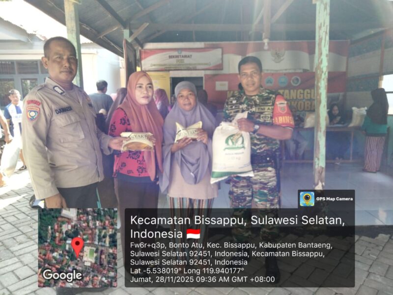 BANTAENG, Teropong Barat.com, – Babinsa Kelurahan Bonto Atu, Koramil 01/Bissappu, Kodim 1410/Bantaeng, Sertu Muhammad Amir, turut mendampingi proses pendistribusian bantuan pangan bagi warga penerima manfaat di Kelurahan Bonto Atu, Kecamatan Bissapu, Kabupaten Bantaeng. Jumat (28/11/2025)