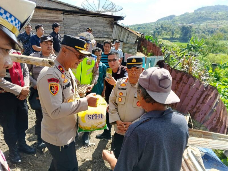 Pakpak Bharat — Polres Pakpak Bharat bersama Bhayangkari menyalurkan bantuan sembako kepada warga yang terdampak bencana longsor di wilayah Kecamatan Salak, Sabtu (29/11/2025). Penyaluran bantuan dilakukan sekitar pukul 10.00 WIB dengan menyasar dua desa yang mengalami kerusakan akibat hujan deras beberapa hari terakhir.