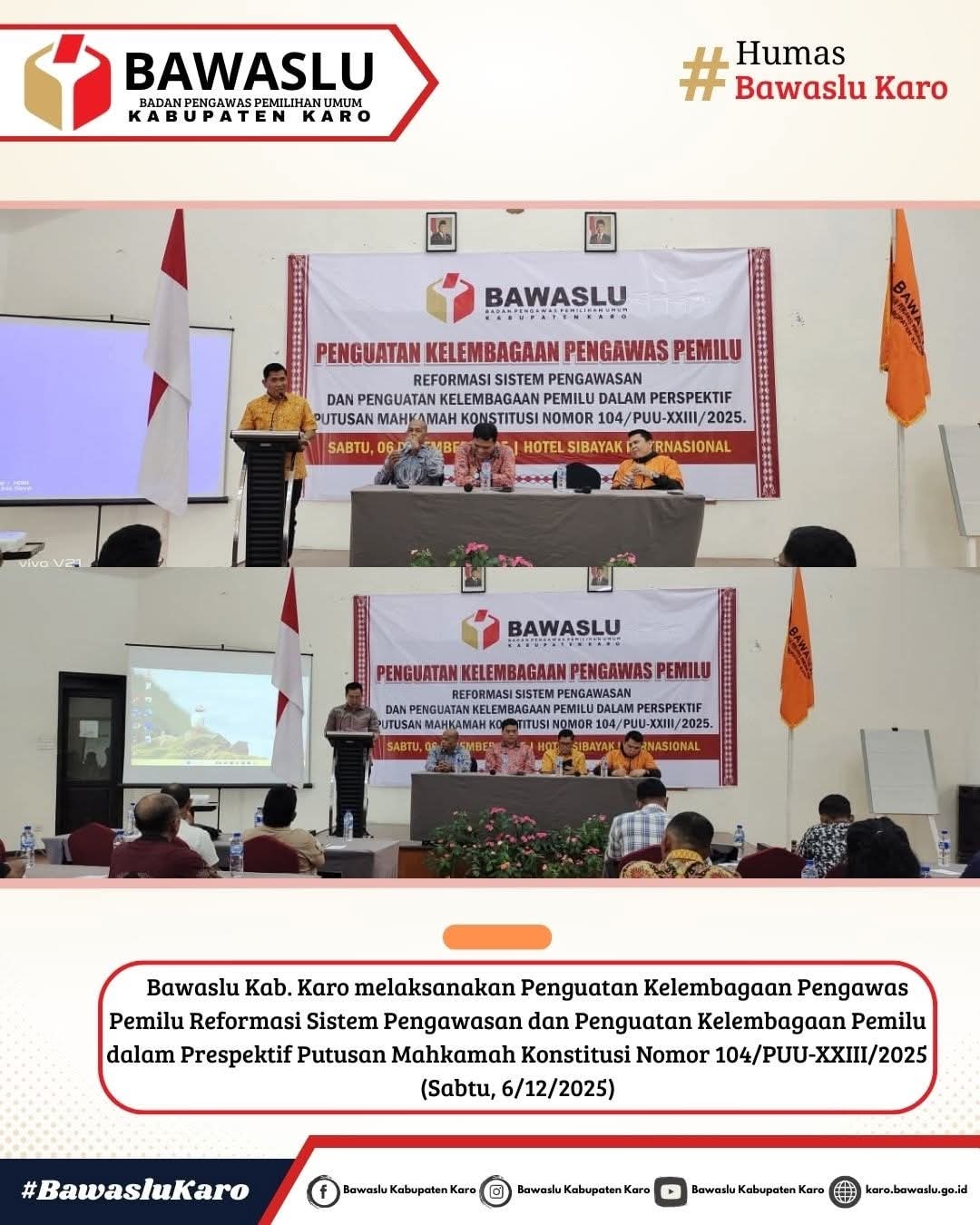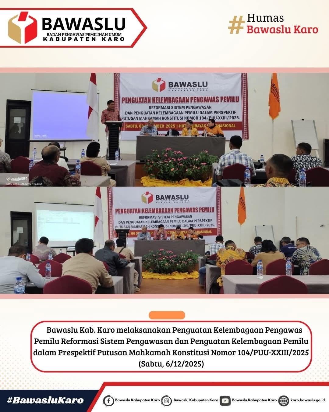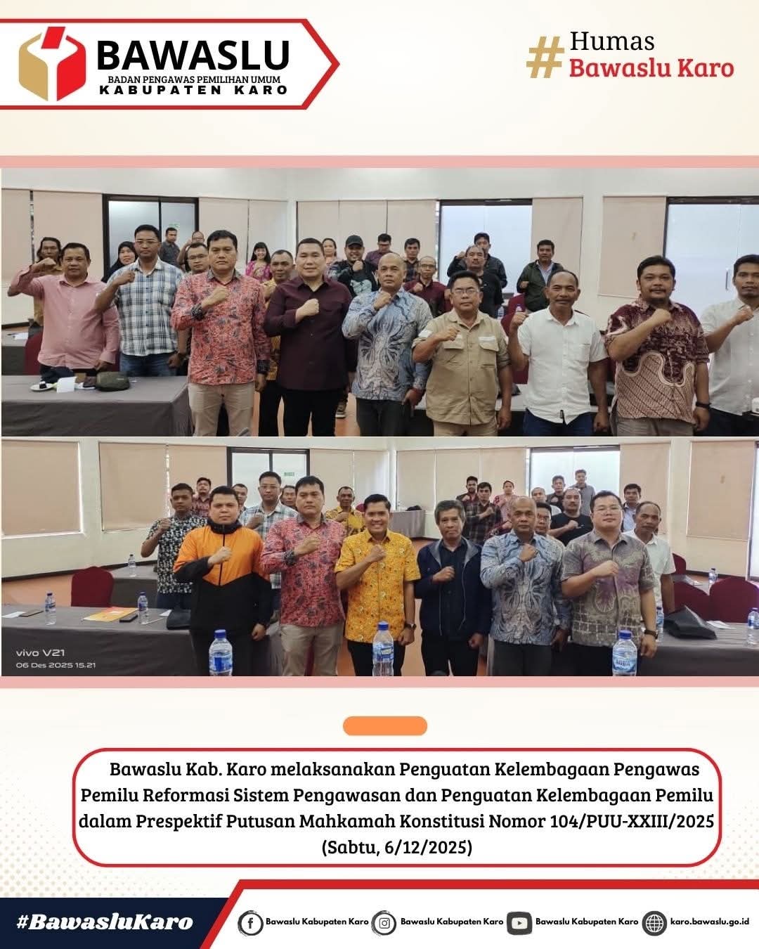 Teropong Barat, Kab. Karo; 10/12/2025. – Bawaslu Kab. Karo melaksanakan Kegiatan Penguatan Kelembagaan di Hotel Sibayak Internasional, (Senin, 8/12/2025).