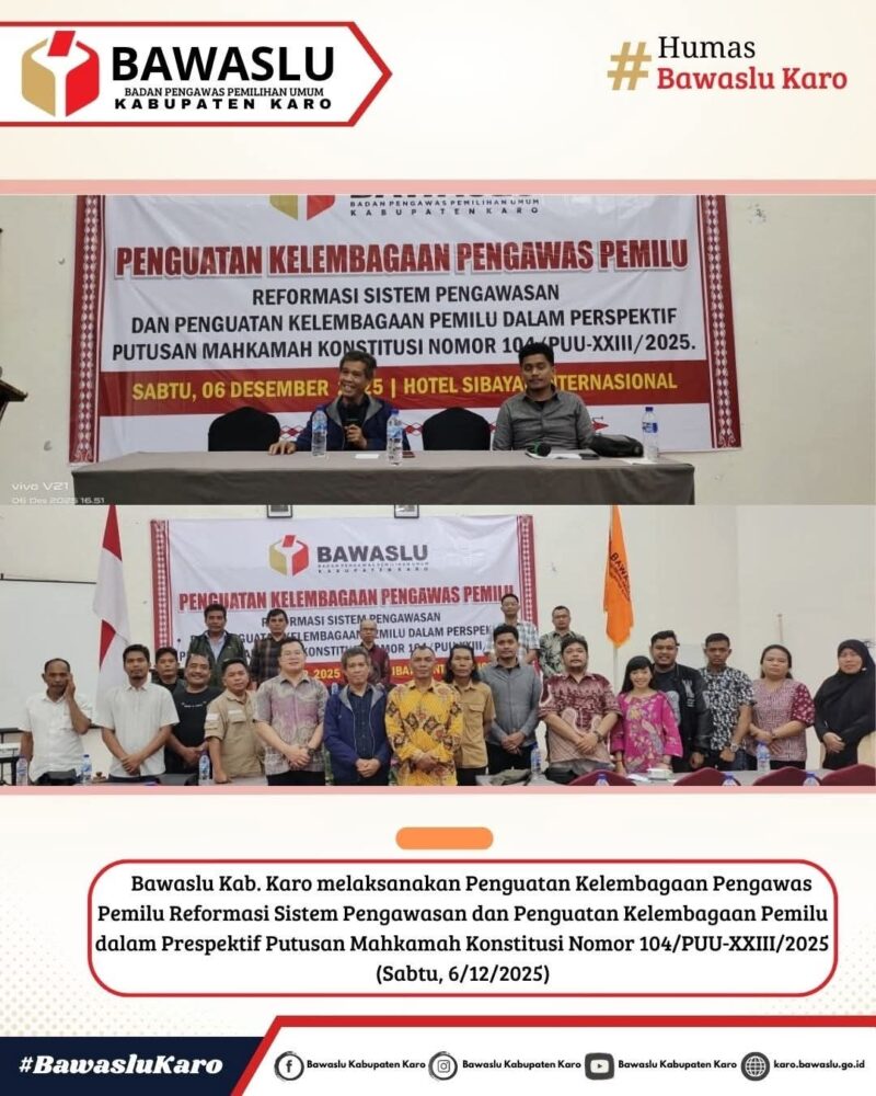 Teropong Barat, Kab. Karo; 10/12/2025. – Bawaslu Kab. Karo melaksanakan Kegiatan Penguatan Kelembagaan di Hotel Sibayak Internasional, (Senin, 8/12/2025).