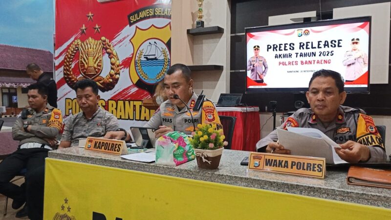 BANTAENG, Teropong Barat.com, – Kepolisian Resor Bantaeng menggelar Press Release akhir tahun yang bertempat di ruang commander center/ vicon Mapolres Bantaeng. Selasa sore (30/12/2025).