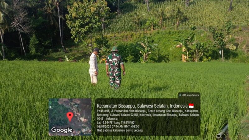 BANTAENG, Teropong Barat.com, – Babinsa Kelurahan Bonto Lebang, Koramil 01/ Bissappu, Kodim 1410/ Bantaeng, Serka Abd. Rahman melaksanakan kegiatan komunikasi sosial (Komsos) sekaligus pendampingan dan pemantauan kelompok tani, Kegiatan tersebut berlangsung di Kampung Beloparang, Kelurahan Bonto Lebang, Kecamatan Bissappu, Kabupaten Bantaeng. Kamis (08/01/2026)