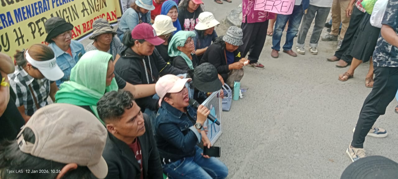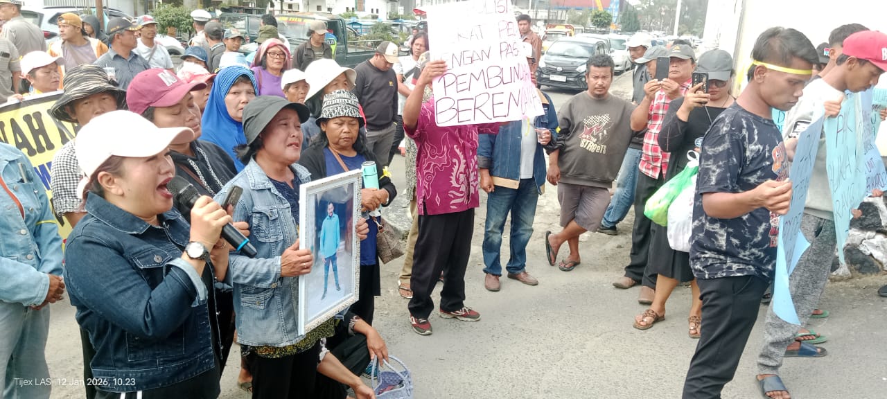 KARO, TEROPONG BARAT | Ratusan warga dari Desa Rumah Kabanjahe dan Desa Ajinembah bersama keluarga korban pembunuhan Roby Perangin-angin mendatangi Markas Kepolisian Resort Tanah Karo pada Senin, 12 Januari 2026. Aksi ini merupakan bentuk desakan kepada pihak kepolisian agar mengusut tuntas kasus kematian Roby Perangin-angin yang diduga kuat merupakan pembunuhan berencana, dengan tempat kejadian perkara di sebuah club malam di Jalan Sudirman, Kabanjahe.