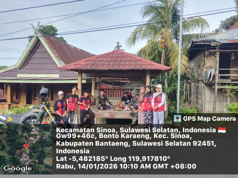 BANTAENG, Teropong Barat.com, – Babinsa Desa Bonto Karaeng, Koramil 01/Bissappu, Kodim 1410/Bantaeng, Serka Ansar Ali melaksanakan kegiatan Komunikasi Sosial (Komsos), Kegiatan tersebut berlangsung di Dusun Ere Manurung, Desa Bonto Karaeng, Kecamatan Sinoa, Kabupaten Bantaeng. Rabu (14/01/2026)