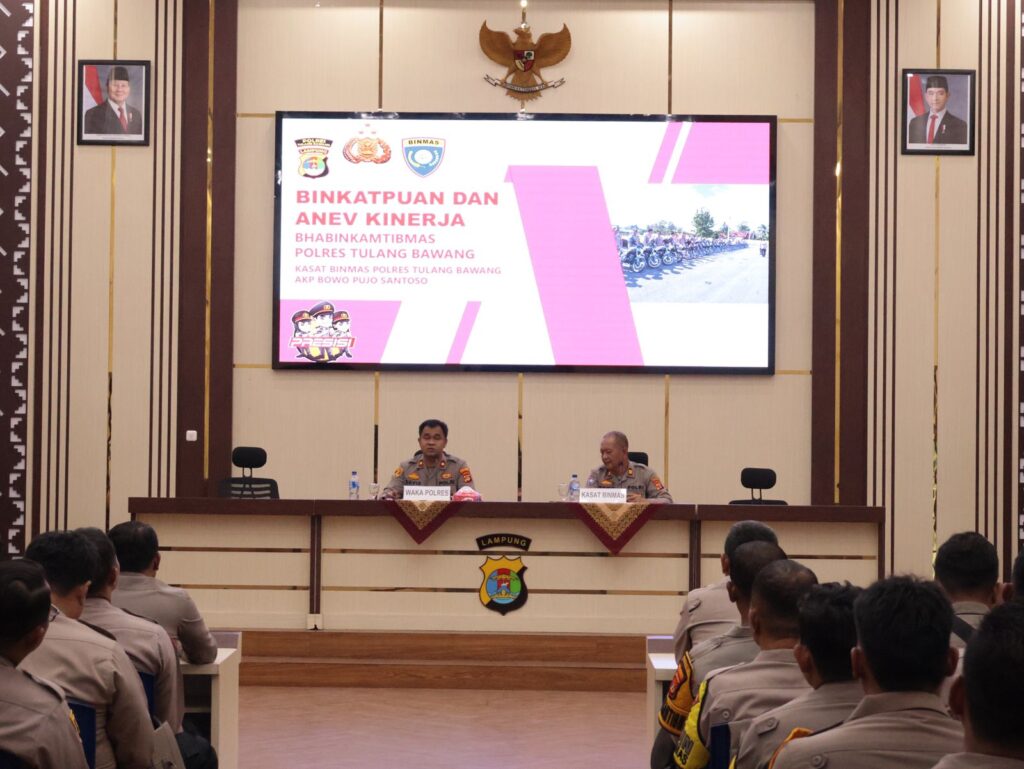 Tulang Bawang // Teropongbarat.com Komitmen Polres Tulang Bawang dalam menjaga stabilitas keamanan dan ketertiban masyarakat kembali ditegaskan. Wakapolres Tulang Bawang didampingi Kasat Binmas memimpin langsung kegiatan Bimbingan Peningkatan Kemampuan (Binkatpuan) dan Analisis serta Evaluasi (Anev) Kinerja Bhabinkamtibmas, yang digelar di Aula Mapolres Tulang Bawang, Rabu (14/01/2026).