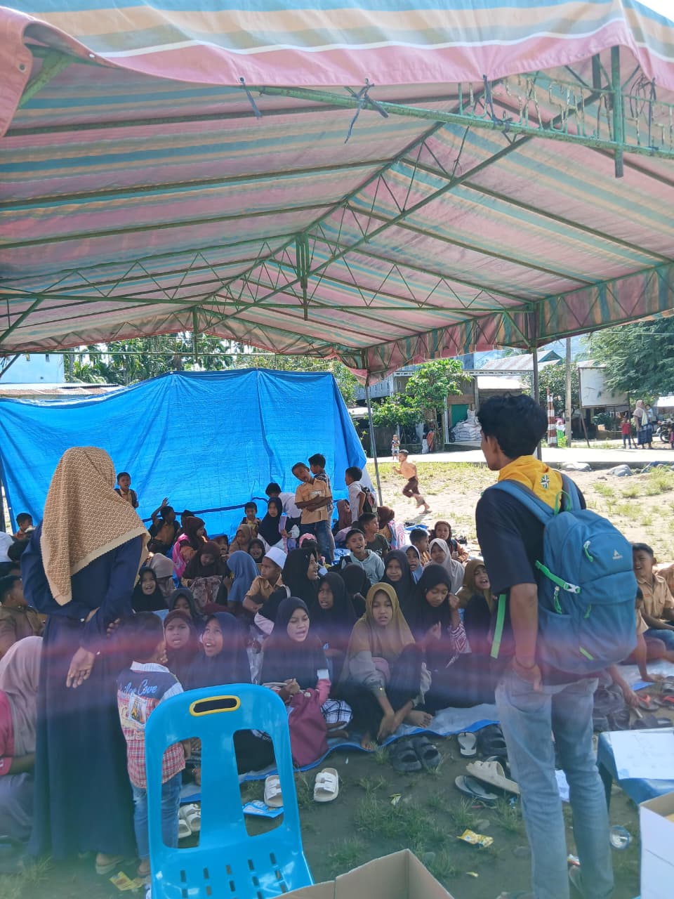 BIREUEN |  Relawan UKM PA-LH ALASKA Universitas Almuslim (Umuslim) Peusangan melaksanakan pendampingan pendidikan bagi anak-anak terdampak banjir dan tanah longsor di Kabupaten Bireuen.
