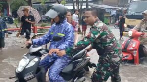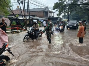 Menanggapi kondisi tersebut, Kopka Agus Chamdi dengan sigap turun ke lokasi untuk melakukan pemantauan sekaligus pengamanan di titik-titik rawan. Bersama warga sekitar, Babinsa membantu mengatur arus lalu lintas serta memberikan imbauan kepada para pengguna jalan agar tidak melanjutkan perjalanan sementara waktu demi keselamatan.