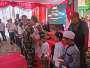 Selain meresmikan kawasan penanganan kumuh, Gubernur Jawa Timur juga menyerahkan santunan kepada anak yatim sebagai bentuk kepedulian sosial kepada masyarakat sekitar.