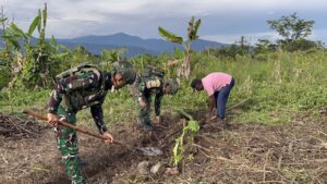Kegiatan penyiapan lahan ini merupakan tahap awal yang direncanakan akan ditanami berbagai tanaman pangan, seperti cabai, ubi-ubian, dan kacang-kacangan. Personel Satgas Yonif 521/DY bersama pemilik lahan dan beberapa warga bergotong royong membersihkan area, mengolah tanah, serta memastikan lahan siap untuk proses penanaman selanjutnya. Di sela-sela kegiatan penyiapan lahan, ada warga yang meminta bantuan personel Satgas Yonif 521/DY untuk melakukan pemeriksaan kesehatan berupa pengecekan tekanan darah, Personel Satgas dengan sigap memberikan pelayanan sederhana tersebut sebagai bentuk kepedulian terhadap kondisi kesehatan masyarakat sekitar.