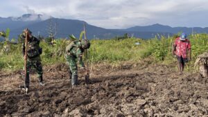 Kobakma, –Pembinaan Teritorial (Binter) TNI AD gencar menyiapkan dan melaksanakan pendampingan lahan pangan di Papua, Kegiatan ini berfokus pada pengolahan lahan tidur menjadi lahan produktif serta pendampingan petani lokal, terutama diwilayah Mamberamo Tengah, Papua Pegunungan (25/01/2026).