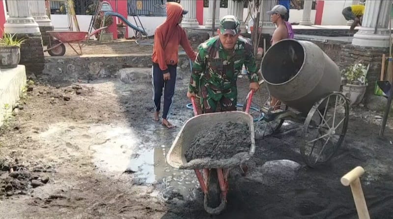 Pererat Kebersamaan Dengan Warga, Babinsa Turut Serta Bangun Tempat Ibadah