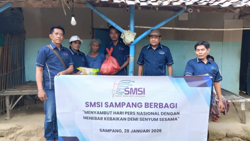 SAMPANG _ TEROPONG BARAT _ Dalam rangka menyambut Hari Pers Nasional (HPN) Tahun 2026, Perusahaan Media yang tergabung dalam Serikat Media Siber Indonesia (SMSI) Kabupaten Sampang menggelar kegiatan sosial dengan memberikan santunan kepada puluhan lansia dan kaum duafa.