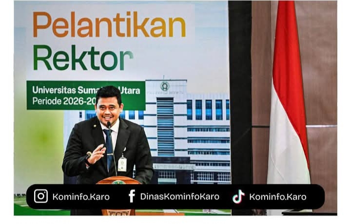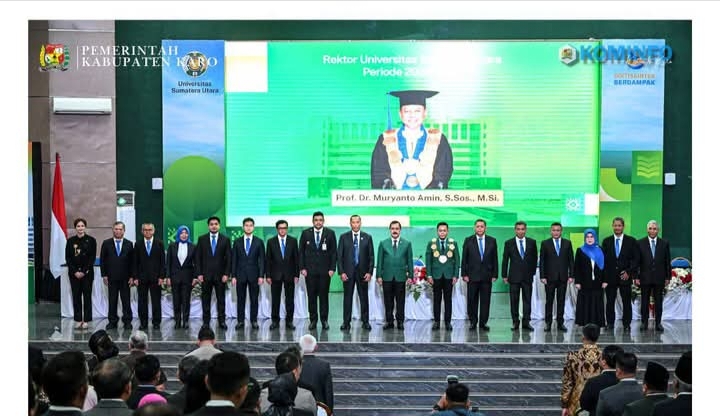 Medan | Bupati Karo menghadiri pelantikan Rektor Universitas Sumatera Utara (USU),periode 2026–2031 ,yang dilaksanakan di Gedung Auditorium Kampus USU, Jalan Dr. Mansyur, Medan, pada Rabu (28/01/2026). Pada pelantikan tersebut, Muryanto Amin kembali dipercaya memimpin USU untuk periode kedua dan dilantik langsung oleh Ketua Majelis Wali Amanat (MWA) USU Agus Andrianto.