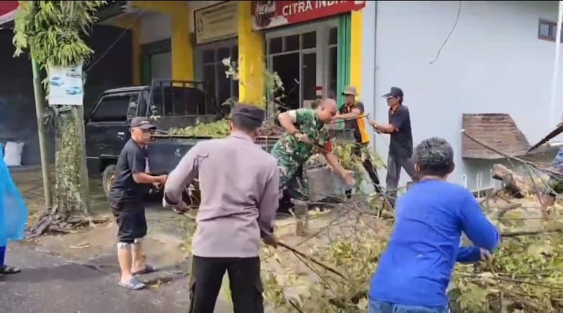Kerja bakti tersebut difokuskan pada pemangkasan ranting-ranting pohon yang dinilai rawan patah dan membahayakan pengguna jalan maupun permukiman warga. Warga bersama Babinsa bergotong royong membersihkan area sekitar jalan dan lingkungan pemukiman agar tetap aman dan nyaman. Sertu Eko menyampaikan bahwa kegiatan ini merupakan bentuk kepedulian TNI terhadap keselamatan masyarakat. “Kerja bakti ini kami lakukan untuk mengantisipasi terjadinya pohon tumbang saat musim hujan dan angin kencang. Dengan pemangkasan ranting pohon sejak dini, diharapkan dapat meminimalisir risiko kecelakaan maupun kerugian bagi warga,” ujarnya.