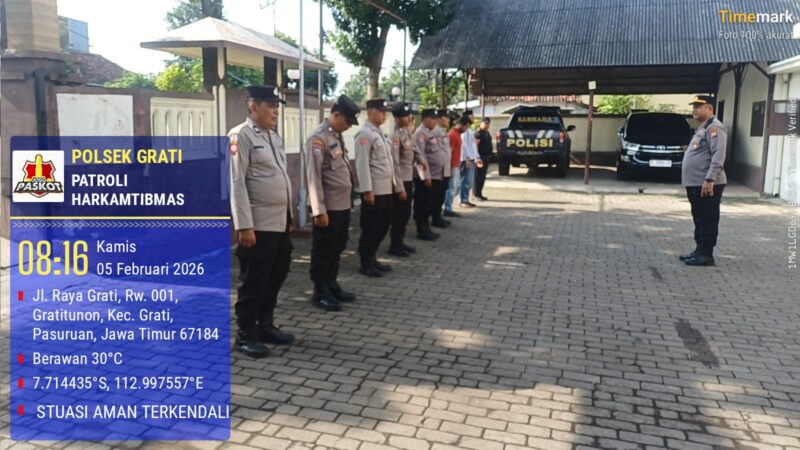 GRATI // Teropongbarat.com melalui pendekatan yang lebih dekat dengan masyarakat. Salah satunya diwujudkan lewat kegiatan Launching mendekat di masyarakat yang Polsek grati Selasa (05/02/2026) Apel pagi.