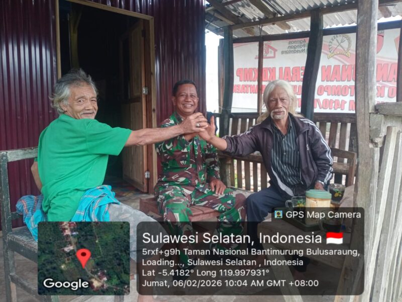 BANTAENG, Teropong Barat.com, – Babinsa Desa Labbo, Koramil 1410-03/Tompobulu, Kodim 1410/Bantaeng, Pelda Baharuddin, melaksanakan kegiatan komunikasi sosial (komsos), Kegiatan ini merupakan bagian dari tugas pembinaan teritorial Babinsa dalam menjaga hubungan baik dengan masyarakat di wilayah binaan yang dilaksanakan bersama tokoh masyarakat di Dusun Panjang Utara, Desa Labbo, Kecamatan Tompobulu, Kabupaten Bantaeng. Jumat (06/02/2026)
