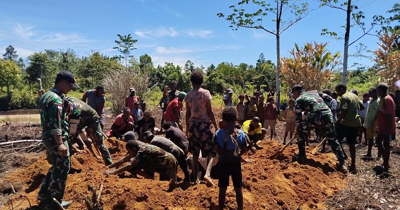 [KOROWAY, PAPUA SELATAN ] Dalam rangka memperkuat hubungan sosial dengan masyarakat di wilayah penugasan, Pos Koroway Satgas Yonif 123/Rajawali melaksanakan kegiatan kemanusiaan dengan membantu prosesi pemakaman salah satu warga Kampung Mabul, Distrik Koroway, Kabupaten Mappi, Papua Selatan. (7/2/2026)