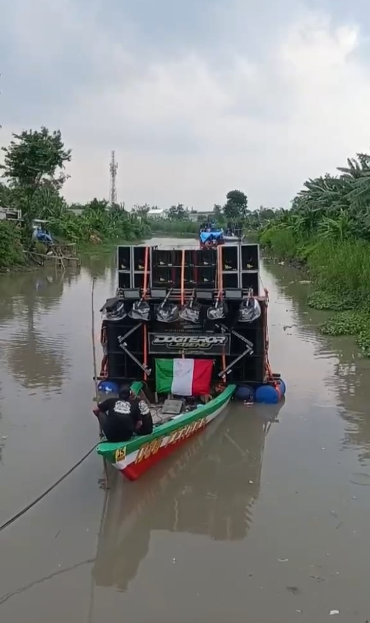 Sidoarjo // Teropongbarat.com Sebuah perahu yang mengangkut perangkat sound horeg dilaporkan tenggelam di Sungai Balongdowo, Kecamatan Candi, Kabupaten Sidoarjo, Sabtu (7/2/2026). Insiden tersebut terjadi saat panitia tengah mempersiapkan rangkaian hiburan untuk memeriahkan tradisi Nyadran.